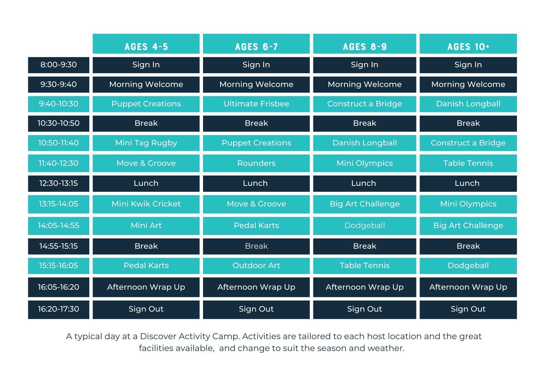 We’ve got lots of exciting activities happening throughout the week. Here’s what we have planned: